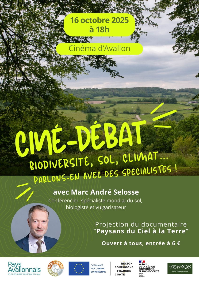 Pour toutes et tous , un docu-débat à 18h, Cinéma d’Avallon — « Paysans du Ciel à la Terre », suivi d’un débat avec Marc-André Selosse