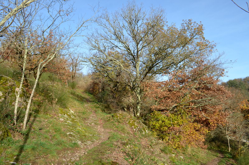 Le peuplement du Parc des Chaumes est très inégal selon l’endroit où l’on se trouve. Au Sud, le lacet grimpe le long d’une pente aux nombreux affleurements granitiques parsemée de genêts, sur laquelle quelques chênes sessiles atteignent péniblement les 7 à 10 mètres pour les plus grands, avec beaucoup de bois mort. Même les robiniers faux acacias, espèce invasive et colonisatrice qui semble vouloir s’y installer, survit avec difficulté. Le sol est peu profond. Il y règne une atmosphère de western et l’on s’attend à voir Zoro surgir des chênelets sur son fameux Tornado.