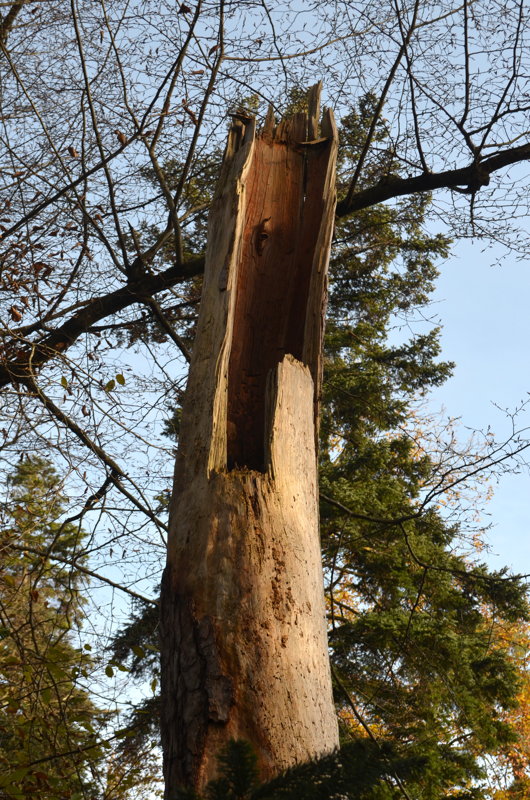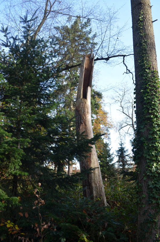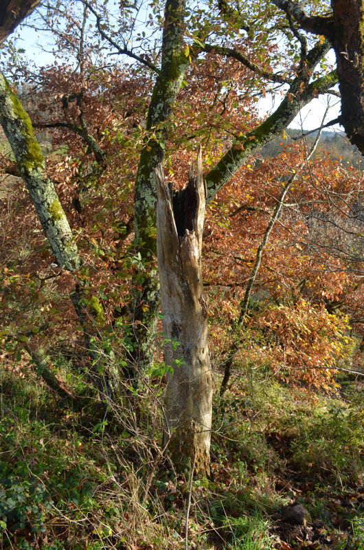 - enfin, quelques arbres ont visiblement souffert de périodes de sécheresse prolongées, à cause du changement climatique, provoquant une sénescence précoce, surtout au sud du Parc.