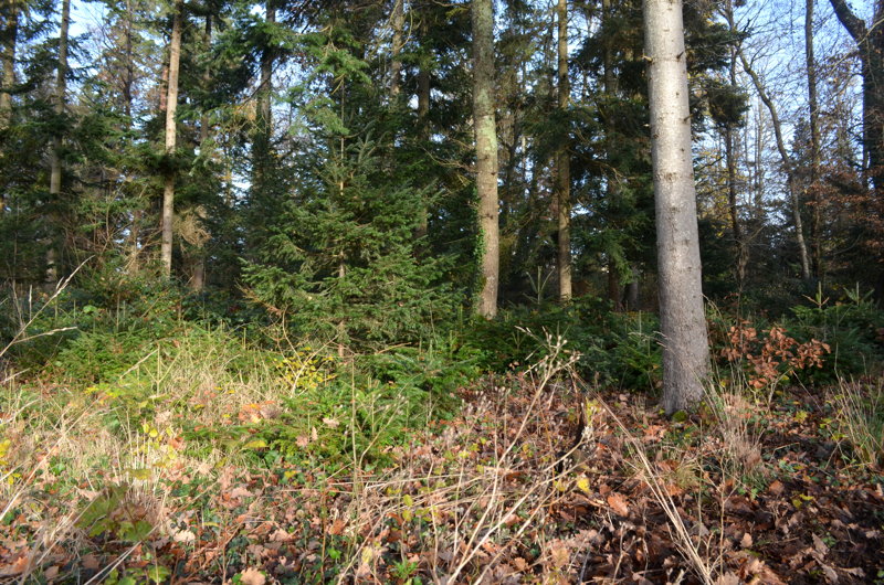 - l’ancien peuplement d’épicéas, essence sensible à la sécheresse, atteint par Ips typographus, un scolyte* spécifique bien connu, de l’ordre des coléoptères a fait l’objet de coupes sanitaires*. Notons au passage que l’optimum d’altitude des épicéas est entre 700 et 2000 mètres donc pas étonnant que des peuplements, en plus monospécifiques, souffrent dès qu’il y a un changement climatique (Le Parc des Chaumes culmine à environ 260 mètres d’altitude). ;