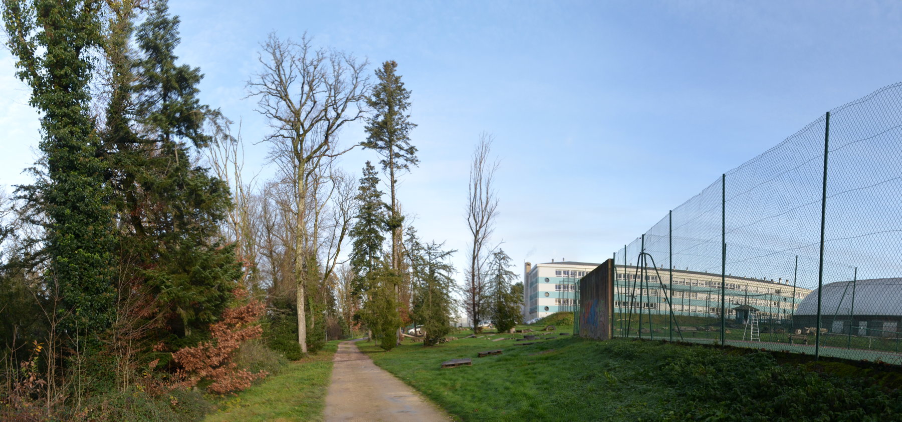 Les dernières parcelles déboisées jusqu’en 2023 pour raison sanitaire (plantation monospécifique d’épicéas scolytés) auraient pu être reboisées avec un mélange d’espèces indigènes au lieu d’être requalifiées* en bike parc ou être artificialisées en terrain de basket. Il est en effet totalement contradictoire, sous couvert de prophylaxie* d’affaiblir davantage l’écosystème forestier en réduisant son espace vital, surtout quand ce dernier fait partie intégrante d’une charte avec la LPO BFC. Après les terrains de tennis, un nouveau jeu de balle à la mode (le padel) va occasionner une artificialisation de la dernière zone verte résiduelle après les abattages de 2023.