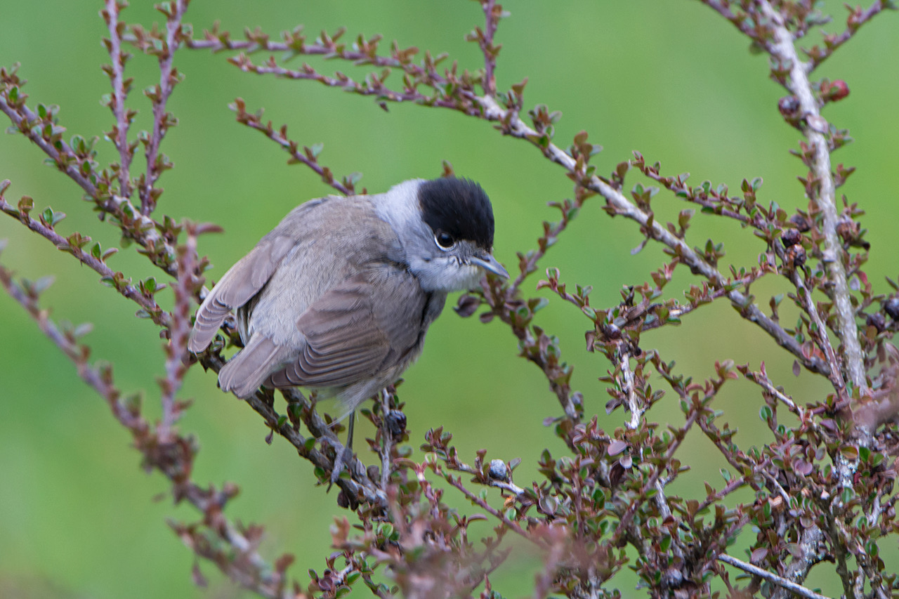 - La fauvette à tête noire, qui, tout comme le rouge-gorge, affectionne les ronciers en sous-bois ;
