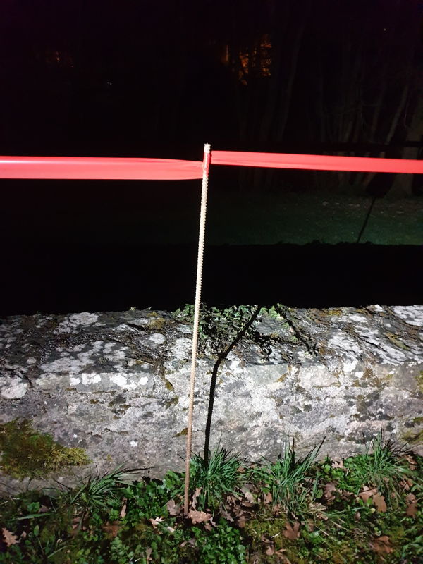 Rallye avallonnais 2026 — Détail du fer à béton au sommet du délinéateur en plastique