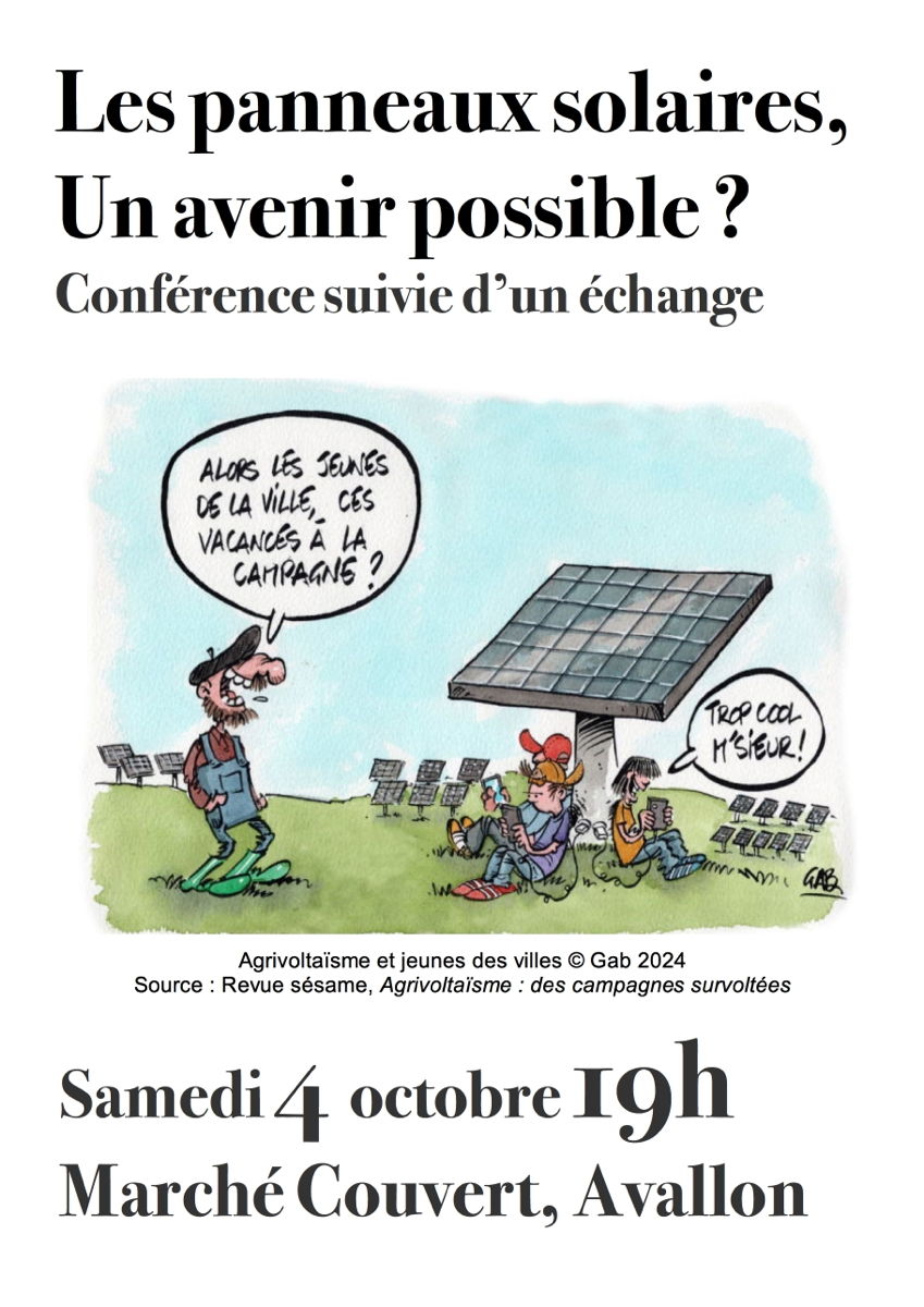 Samedi 4 octobre 19h, Marché Couvert — Conférence : L’agrivoltaïsme, un avenir possible ?