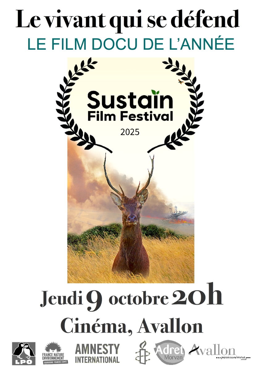 Prix du meilleur documentaire du Sustain Film festival 2025, sélectionné plusieurs fois, dont à Cannes, Le vivant qui se défend est LE FILM DOCUMENTAIRE 2025 à voir absolument. Ont participé à la soirée : la LPO, Yonne Nature Environnement, Amnesty international et Adret Morvan.