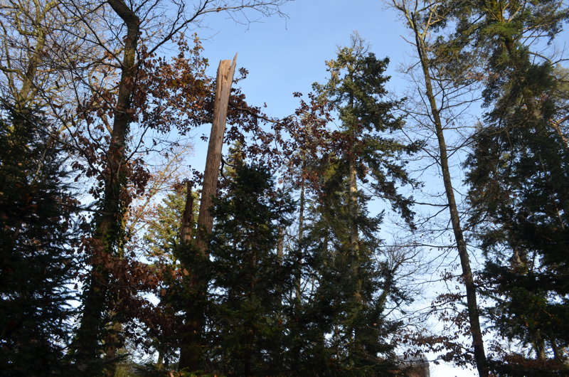 - enfin, quelques arbres ont visiblement souffert de périodes de sécheresse prolongées, à cause du changement climatique, provoquant une sénescence précoce, surtout au sud du Parc.