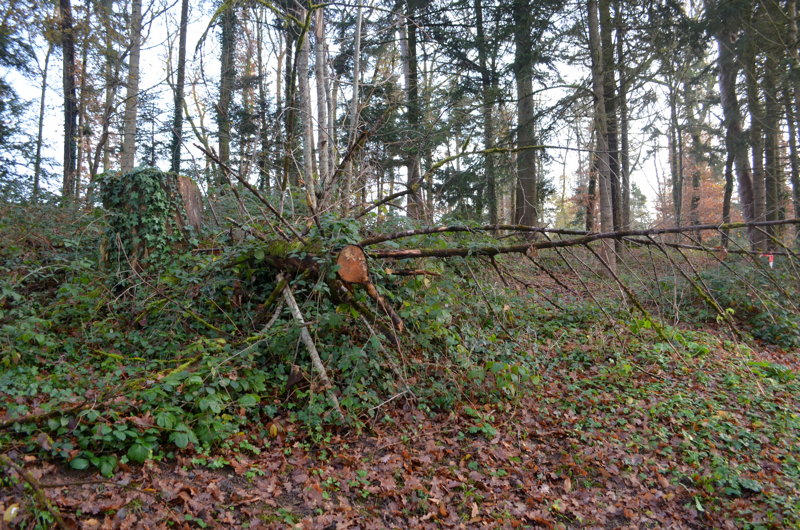 - l’ancien peuplement d’épicéas, essence sensible à la sécheresse, atteint par Ips typographus, un scolyte* spécifique bien connu, de l’ordre des coléoptères a fait l’objet de coupes sanitaires*. Notons au passage que l’optimum d’altitude des épicéas est entre 700 et 2000 mètres donc pas étonnant que des peuplements, en plus monospécifiques, souffrent dès qu’il y a un changement climatique (Le Parc des Chaumes culmine à environ 260 mètres d’altitude). ;