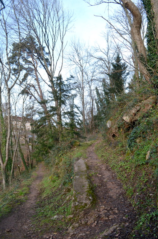 Au sommet du lacet Sud, on est accueilli sur le plateau par les premiers grands arbres, avant de rentrer dans une forêt plus fermée, parcourue par des allées réservées aux piétons au moyen de rochers en granite à leurs extrémités, à l’exception d’une route périphérique desservant les habitations. En sous-bois, la régénération spontanée se fait soit en chênes sessiles, soit en sapins pectinés, accompagnés bien-sûrs d’érables.