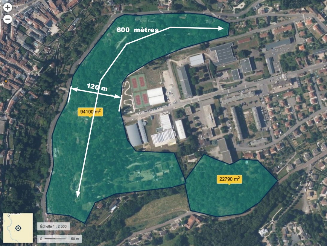Pour le service des espaces verts, le Parc s’arrête évidemment aux limites des parcelles publiques appartenant à la ville d’Avallon. Mais du point de vue paysager, écologique, autant que forestier, le boisement intègre l’ensemble des espaces arborés contigus de ce versant, évalué à au moins 10 hectares, voire 15 hectares selon les zones intégrées au calcul.