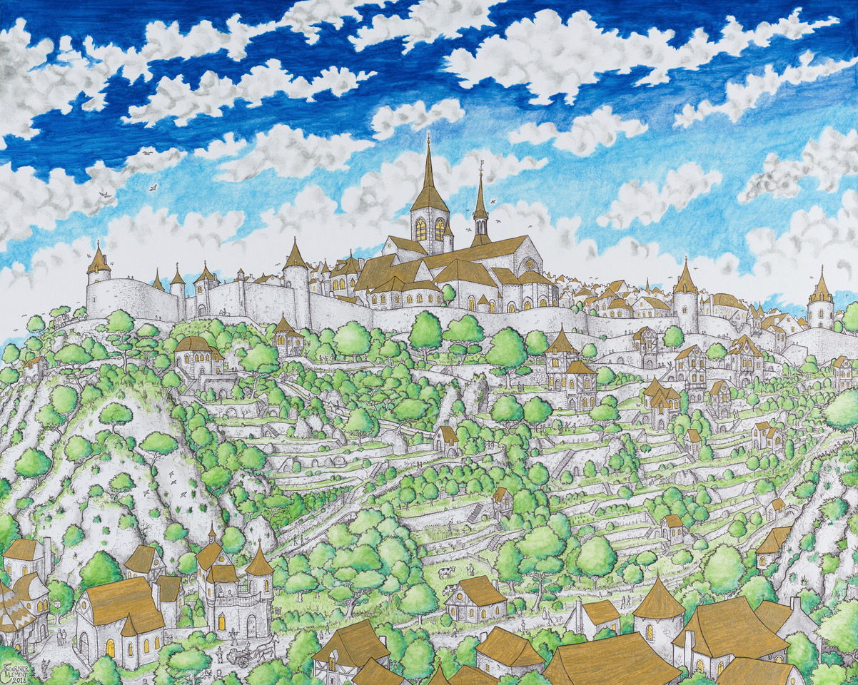 L’éperon de verdure qu’offre le Parc des Chaumes à la vue des Remparts, dans le vieil Avallon, ajoute à la plongée des jardins en terrasse* une dimension féérique, source d’inspiration pour plusieurs habitant•es, comme l’artiste-murailler* Clément Fournier.