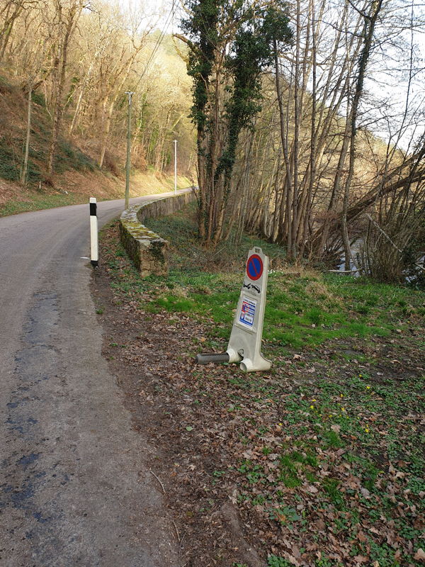 Cette photo, prise après le passage du rallye, illustre la dangerosité du balisage du rallye de l’avallonnais, y compris pour d’autres usagères ou usagers, par exemple des cyclistes, qui circuleraient sur la voie publique. Qui serait responsable, dans ce cas ?